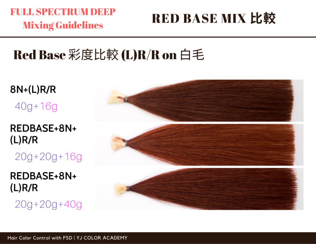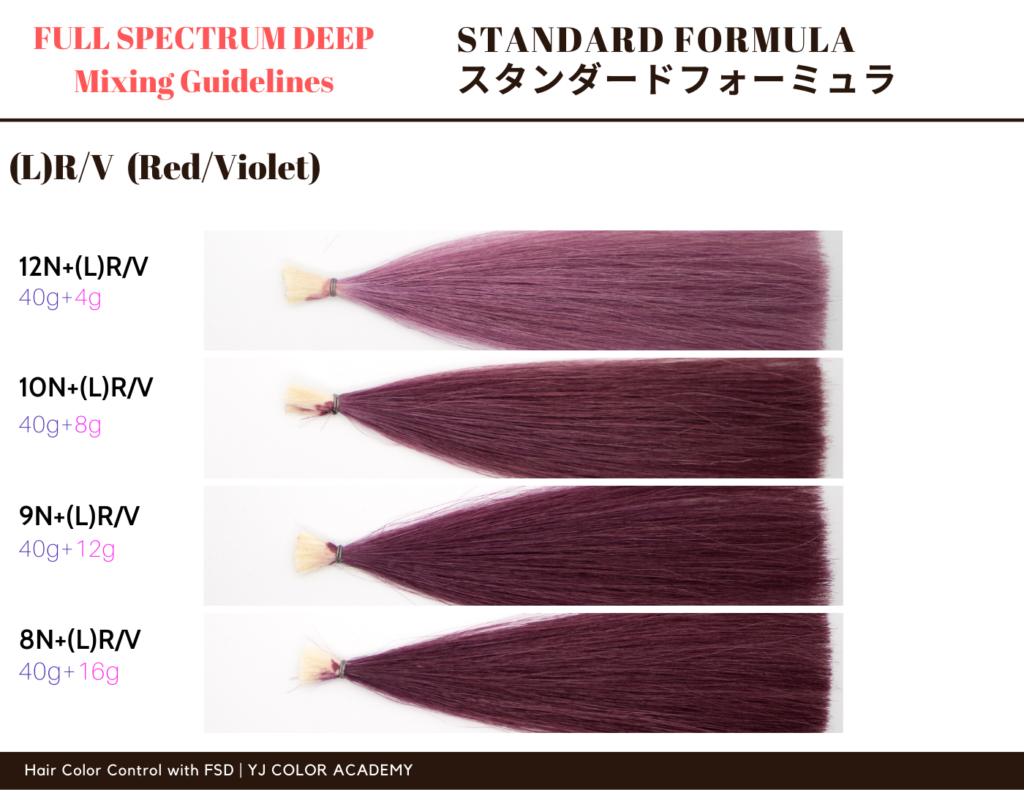 (L/D)R/R,(L/D)RV,(L)O/Y,(D)O/Rの使いこなしや、ファッショ系REDカラー必須アイテム【RedBase】等のミックスのコツなどを、実際に染めた毛束などを使って、分かりやすく解説します。