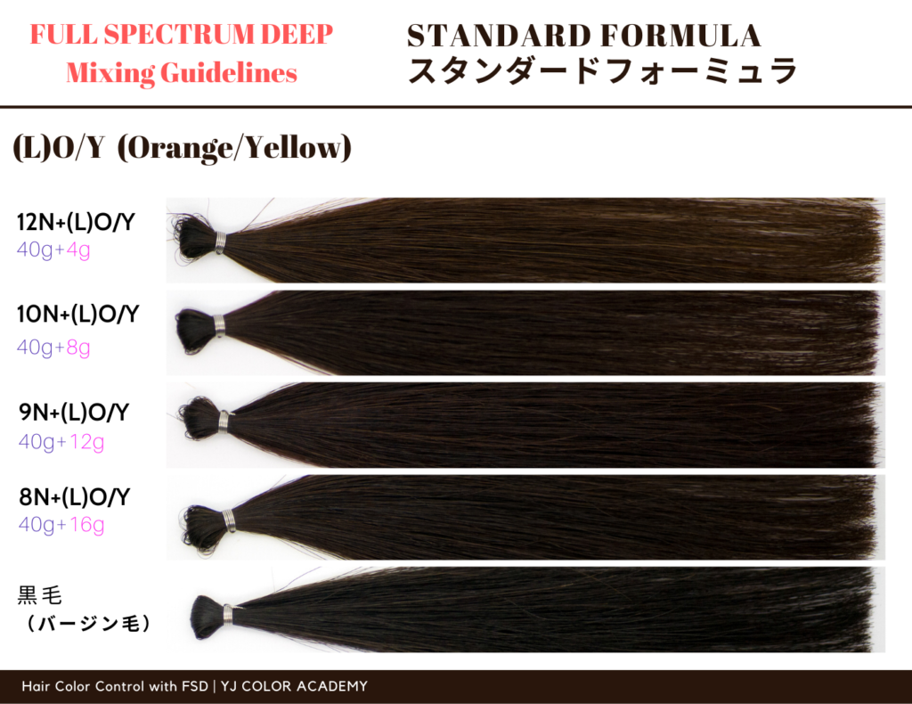 暖色系ピュアトーンのスタンダードフォーミュラを、実際にヴァージン毛に塗布した毛束を比較!