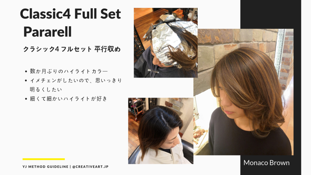 【YJ Method ハイライト】は過去20年間、セミナー開催200回、受講者数5000人以上、JHA受賞者や有名サロンの店長から、まだ美容キャリア1年生まで、幅広くの美容師さんが受講した実績がある、「美しくホイルを畳む」と言った技術に特化した、ハイライトカラーテクニックの基礎が身に付くメソッドです。