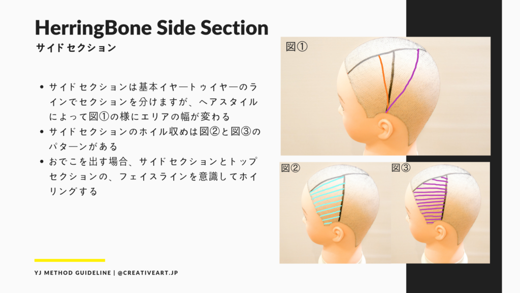 動画は全8本。Vol.1からVol.8を通して、ホイルワークの基本から様々なセクショニング解説を、実際のモデルやウィッグ、ビジュアル的に分かりやすい、スライドなどを使って動画で解説します。